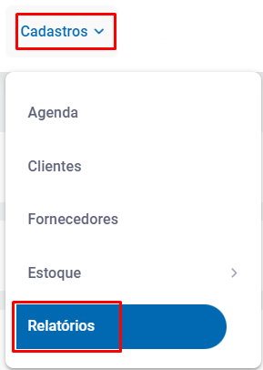 Primeiramente, acesse Cadastros - Relatórios;