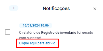 Após apresentar a notificação, clique no ícone de notificações e acesse o inventário clicando na opção Clique aqui para Abri-lo;