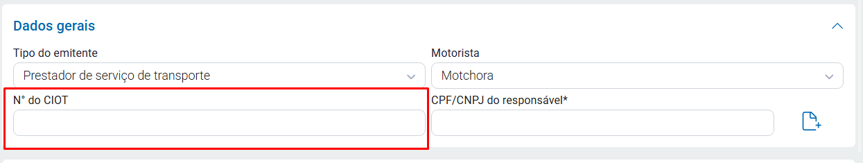 Adicionado - Quando selecionado Prestador de serviço de transporte, para o campo Nº do CIOT ser opcional