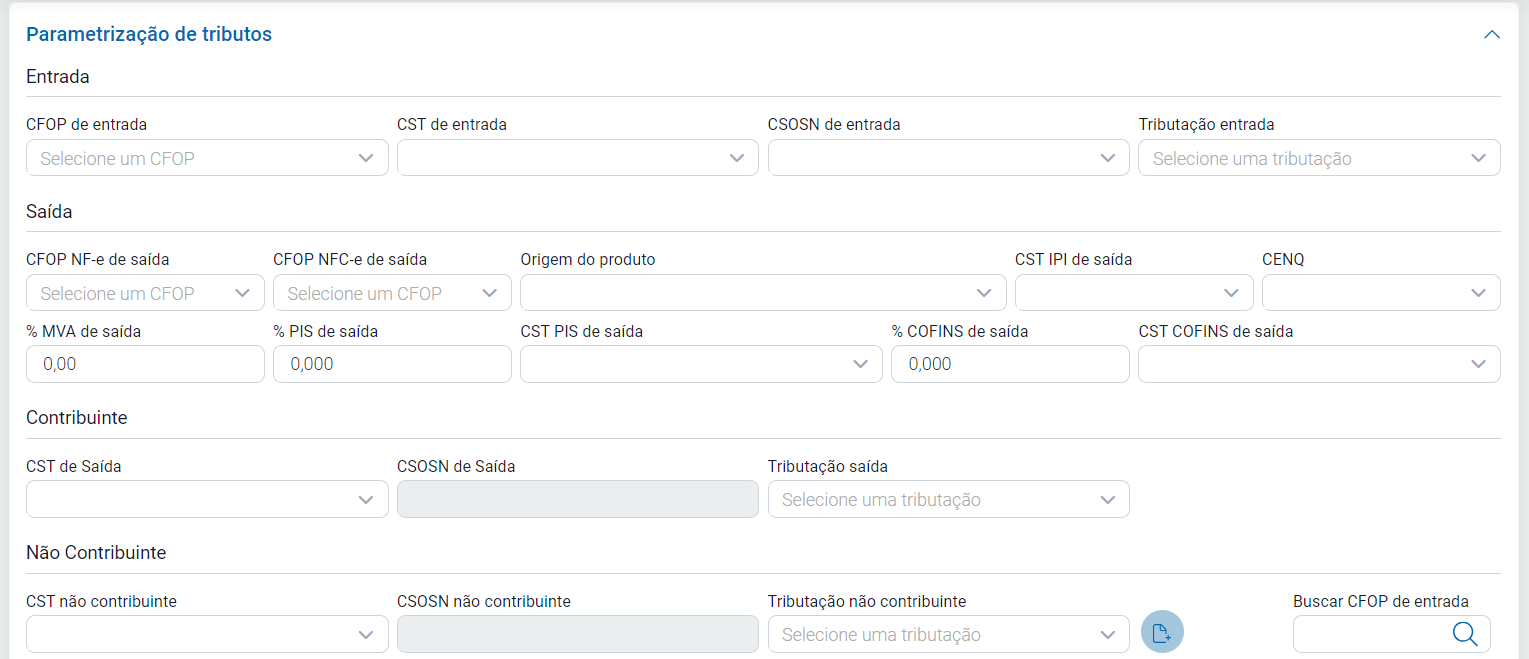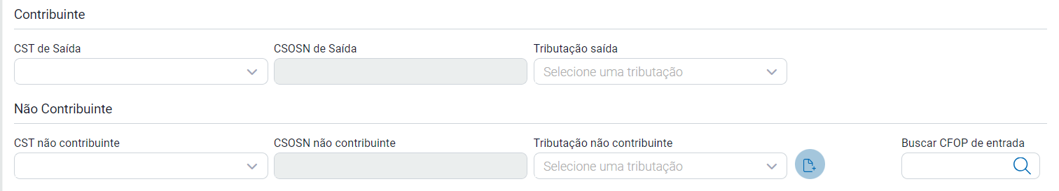 Nos campos para Contribuinte e Não Contribuinte você irá configurar os dados para calcular a tributação no momento da saída;
