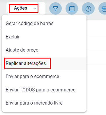 Após selecionar os itens, clique em Ação e vá até Replicar Alterações