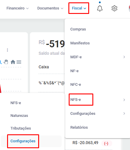 Acesse Fiscal - NFS-e - Configurações;
