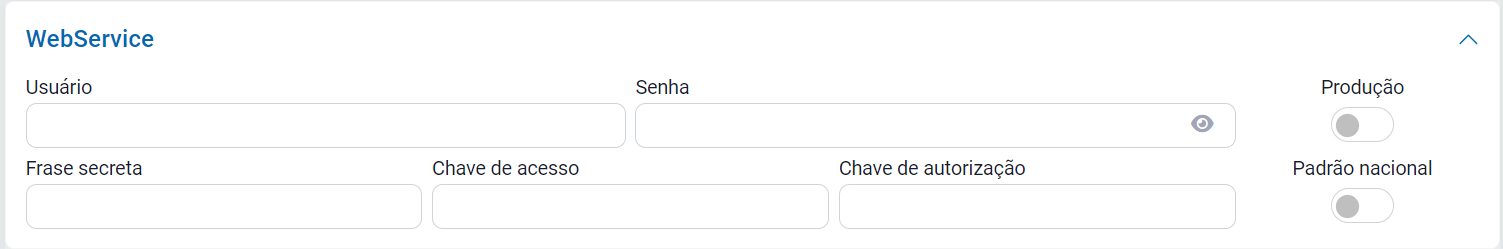 Nessa aba, preencha os requisitos de seu provedor, caso for emitir notas em Produção, ative a chave Produção!
