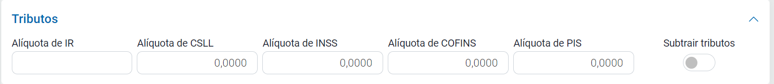 Aqui você deverá preencher os tributos, caso marque Subtrair Tributos, os valores de tributos não serão considerados no total da NFS-e.