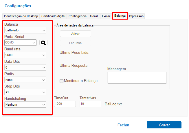Apresentando desta forma, a comunicação e leitura da balança está correto, portanto clique em Gravar e estará pronto para utilizar.