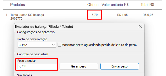 Assim que receber a resposta do peso da balança, o produto será adicionado no cupom com a quantidade na qual foi enviada pela balança.