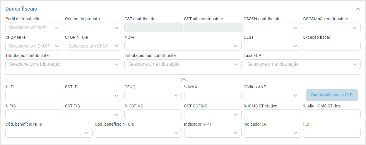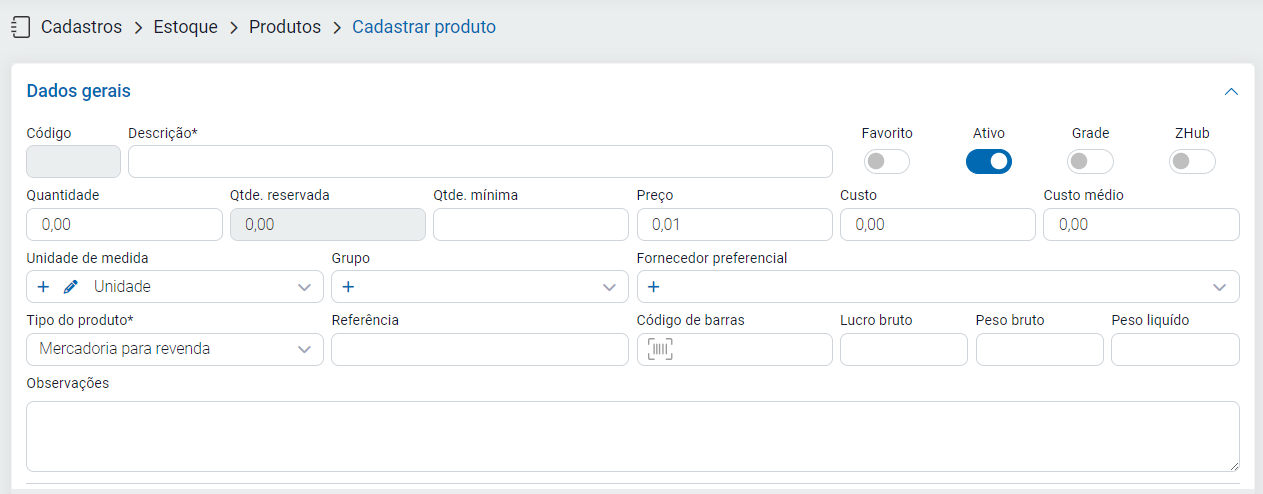 Preencha os seguintes campos do cadastro do produto no estoque:
