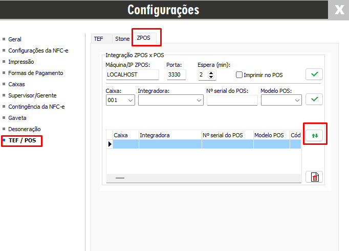 Também é necessário efetuar a instalação do Integrador Z-POS, vá até Configurações (F10) - TEF/POS - Aba ZPOS - clique no icone indicado na imagem a baixo;