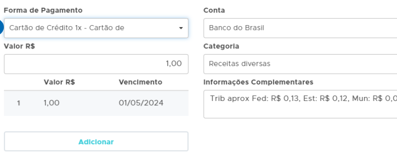 Com a opção ativa, abra uma nova NF-e, efetue os lançamentos de cliente e produtos, no campo de “Forma de pagamento” selecione a opção de “Cartão”