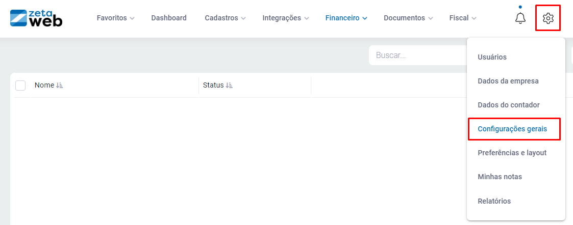 Vá na e Configurações Gerais.