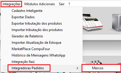 O primeiro processo é acessar a configuração da Mercos, para isso acesse o menu Integrações > Integradoras Pedidos > Mercos.