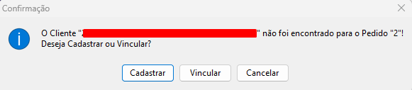 Após isso caso queira Cadastrar ou Vincular o cliente localizado, selecione o mesmo e será apresentado as opções a baixo.