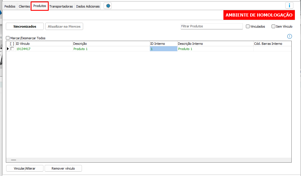 Vincular / Alterar: Vincular um produto ainda não vinculado ou alterar o vínculo.