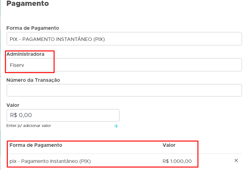 Feito esse processo irá habilitar os campos referente a maquininha da Fiserv para configurar no sistema.