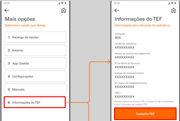 Acessando o aplicativo Sitef, vá em Informações do TEF e verifique se existe o botão Cadastro TEF.