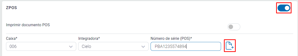 Preencha as informações colocando o número do caixa, selecione a integradora Cielo, coloque o número de serial da maquininha, pode ser encontrado atrás da maquininha ou acessando o app ZPOS;