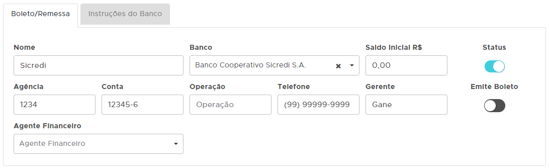 O primeiro passo é configurar corretamente a conta, para isso, acesse: Financeiro - Outros - Contas