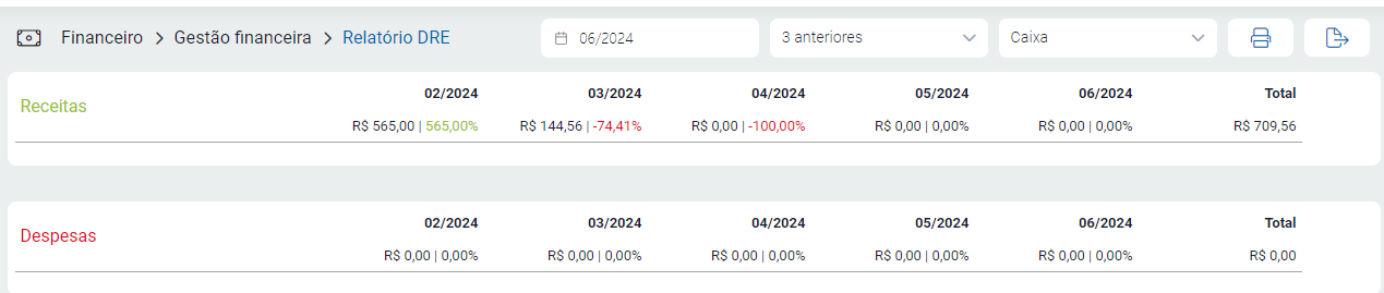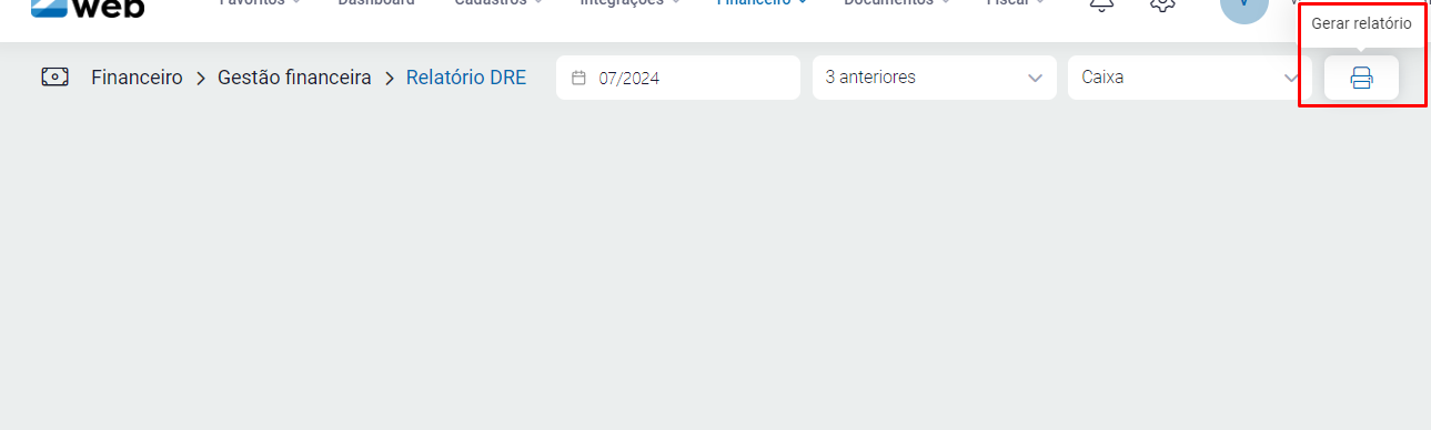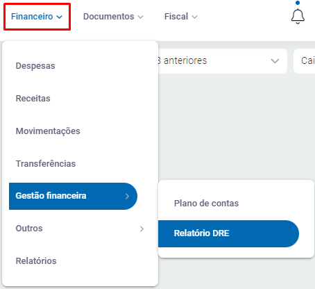 Para localizar o relatório acesse Financeiro - Gestão Financeira - Relatório DRE