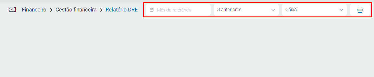 A primeira opção será o Mês de referência, o DRE em questão é gerado baseado do primeiro ao último mês, portanto selecione o mês de interesse.