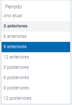 Passando para a próxima opção, será o Período, aonde poderá puxar os dados referente a comparação de meses anteriores, ou ano atual, no qual puxará os dados do ano inteiro.