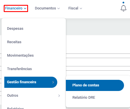 Portanto acesse Financeiro - Gestão financeira - Plano de Contas.