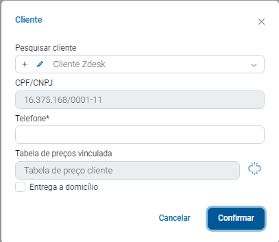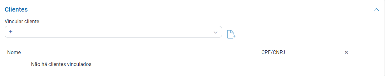 Apresentará o campo Vincular Cliente, neste campo é disponibilizado para localizar o cliente, após localizar, selecione o mesmo e clique