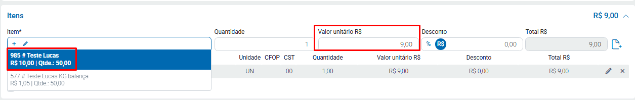 Assim que confirmar, será alterado o valor dos itens.