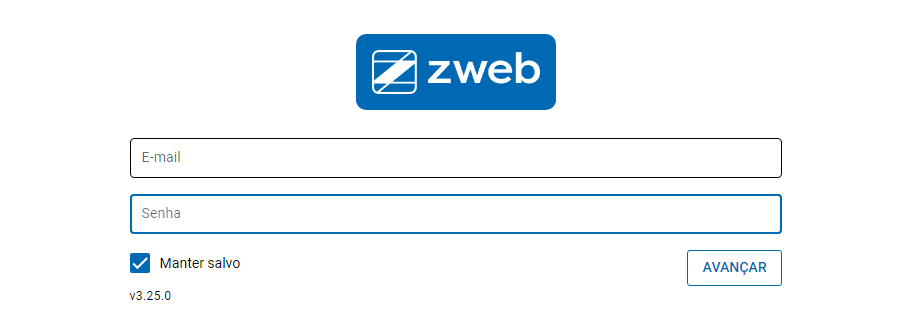 Ao abrir o Terminal ZWeb apresentará o local para informar os dados de login do usuario.