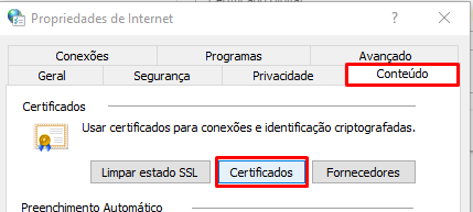 Os certificados que serão apresentados são os mesmos que estão disponíveis acessando as Opções da Internet > Conteúdo > Certificado.