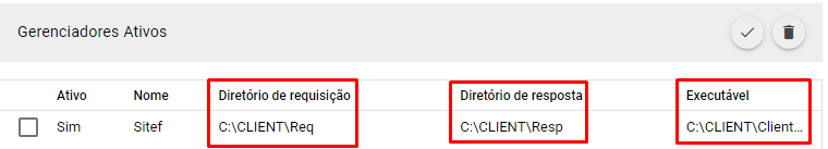 Será apresentado os campos no qual o Terminal buscará informações sobre os arquivos de Requisição e resposta gerados pelo gerenciador tef, assim como o caminho padrão do executável.