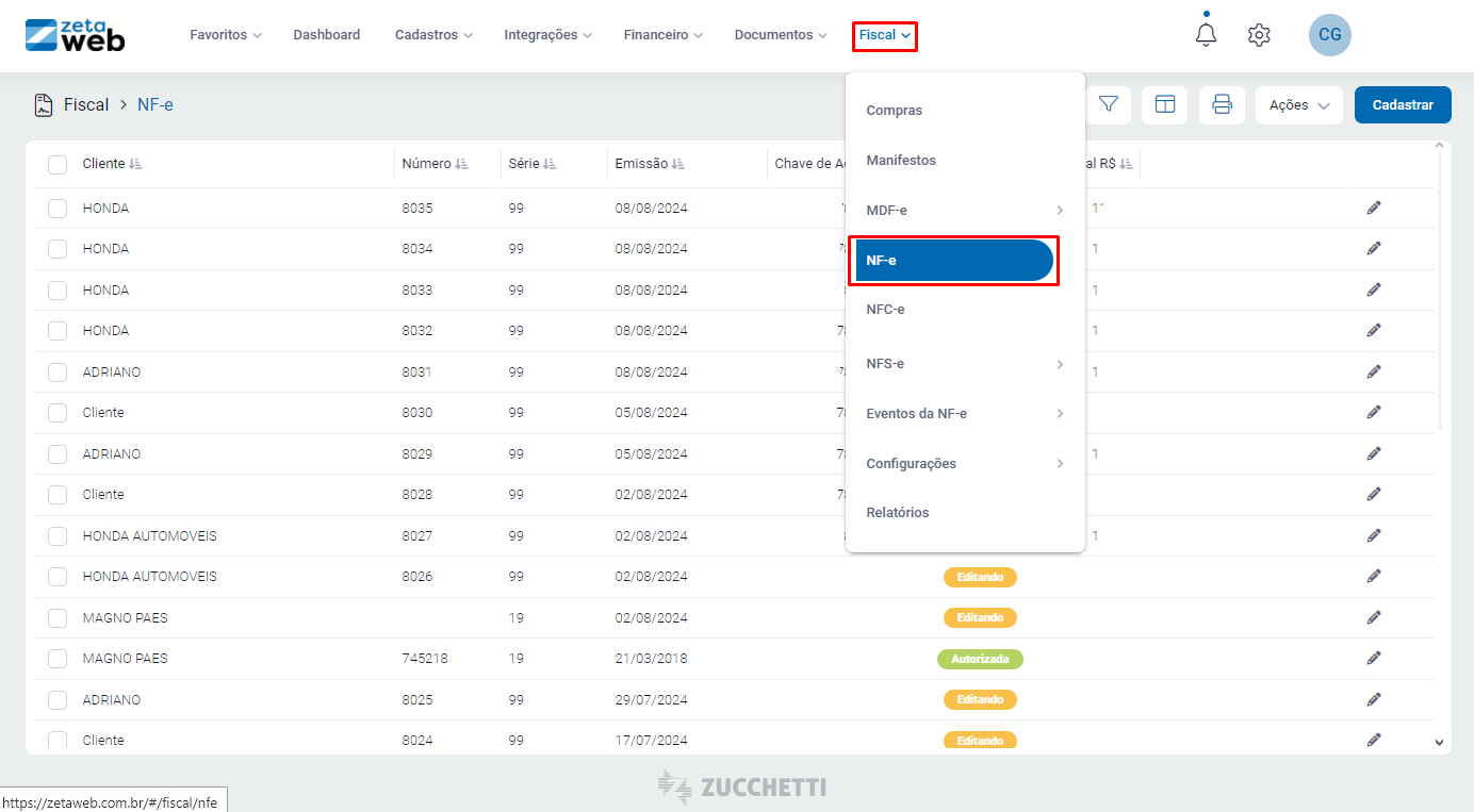 Novamente, acesse suas notas em Fiscal - NF-e.