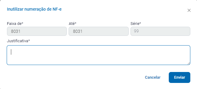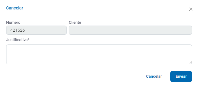 Ao pressionar em Cancelar, abrirá uma aba de Cancelamento, será necessário colocar uma Justificativa de no mínimo 15 caractéres.