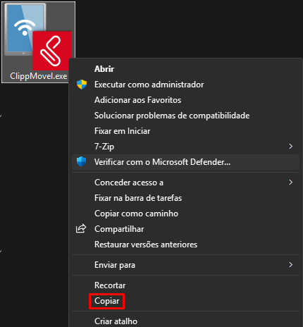 Ao efetuar o download do ClippMovel.exe, localize o mesmo na pasta e copie o arquivo.