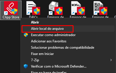 Após copiar o arquivo, vá até o atalho do ClippStore na área de trabalho e clique com o direito, após isso basta clicar em abrir local do arquivo.