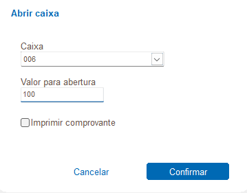Caso ainda não tenha aberto o caixa ainda, será apresentado uma mensagem para a abertura de caixa, selecione o valor e Confirme.