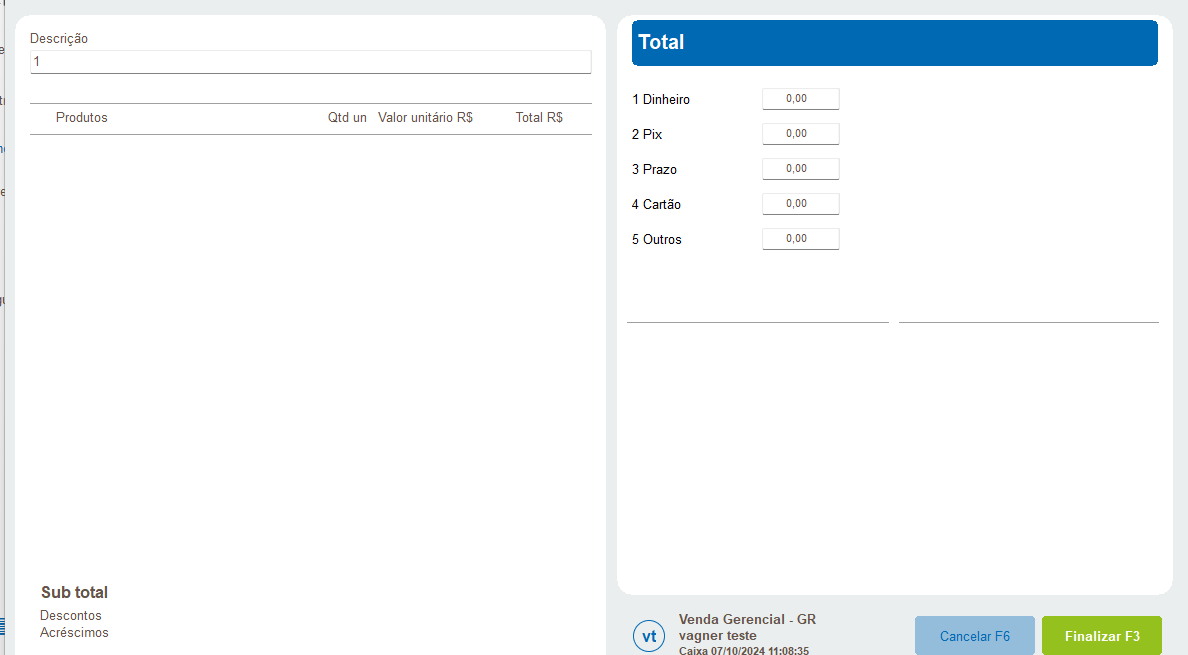 Após isso efetue o lançamento dos produtos e informe os pagamentos.