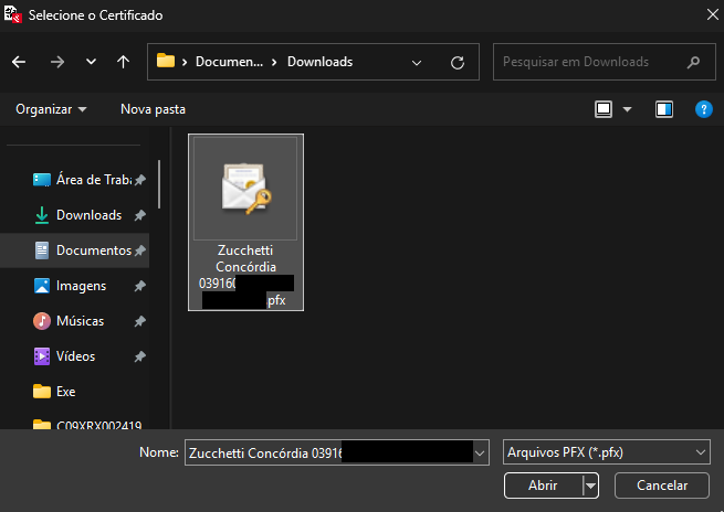 Após isso no campo Local do Certificado selecione Arquivo. E clique no icone ao lado do Caminho, será aberto uma pasta para localizar o arquivo do certificado digital, localize o mesmo e selecione-o.