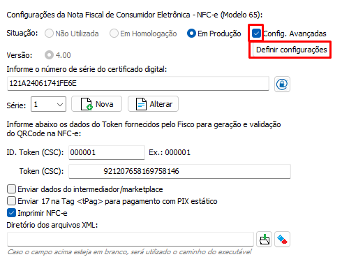 Após isso Marque a opção Config. avançadas e clique em Definir configurações.