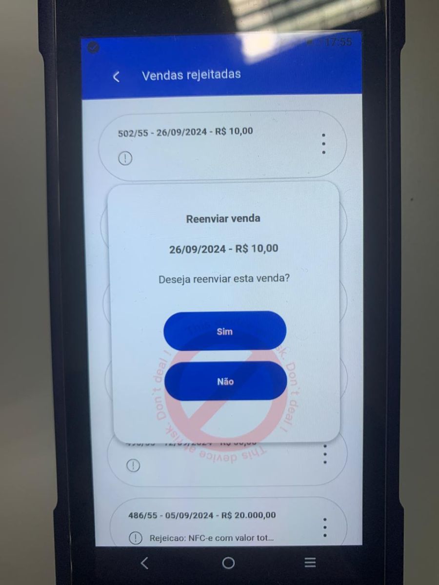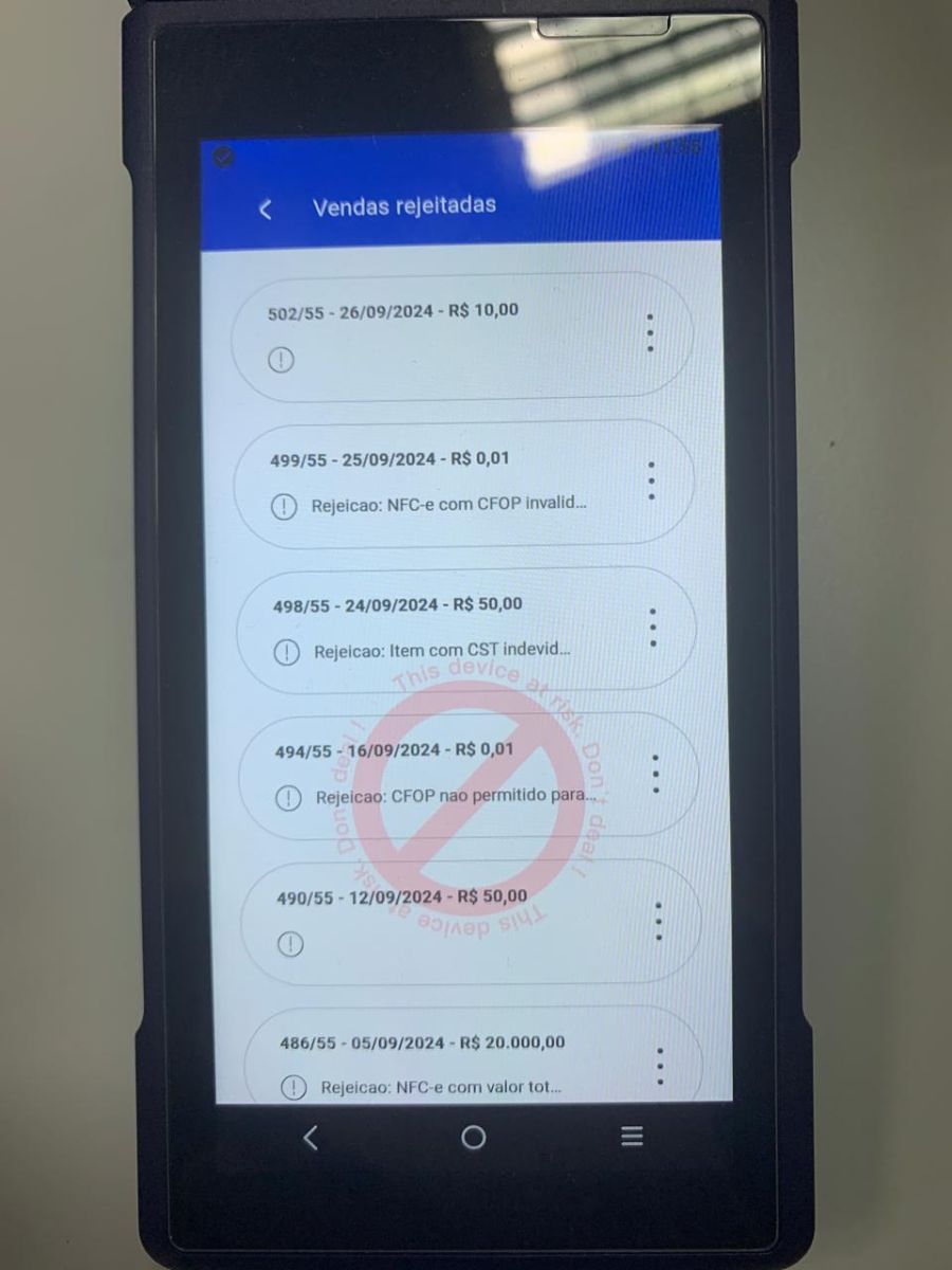 Acessando a aba Vendas rejeitadas através do HUB da NFC-e é possível localizar toda NFC-e no qual foi rejeitada ao finaliza-la.