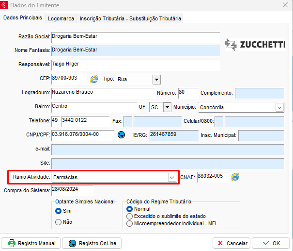 Quando o ramo de atividade do emitente for farmácia, as opções relacionadas serão exibidas, mas o uso dessas funcionalidades será bloqueado caso o plugin de farmácia não tenha sido adquirido. Se o cliente possuir o plugin, as opções serão habilitadas e poderão ser utilizadas, independentemente do ramo de atividade cadastrado. Caso o plugin de farmácia não esteja disponível e o ramo de atividade não seja farmácia, as opções relacionadas não serão exibidas.