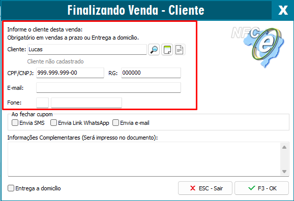 Na emissão de NFCe, ao realizar a venda de um medicamento controlado, é obrigatório informar os dados do cliente. Caso isso não seja feito, a seguinte mensagem será exibida, solicitando a inclusão de um cliente