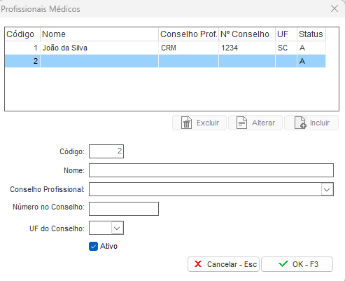 Arquivo: no menu arquivo será possível cadastrar os Médicos/prescritores.
