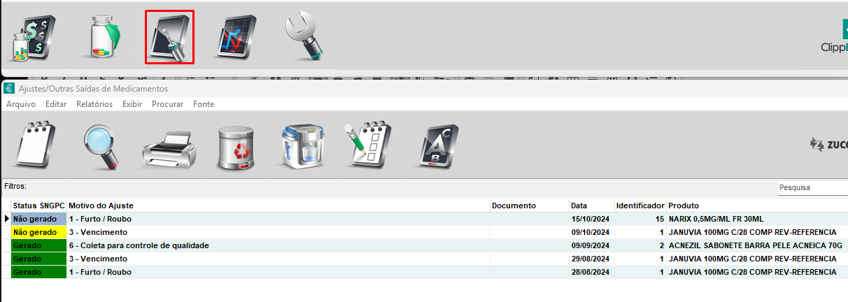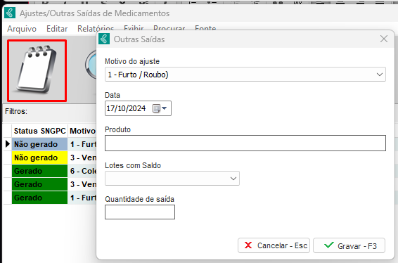 Módulo Ajustes/Outras Saídas de Medicamentos