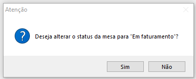 Clicando em NÃO, o status da mesa permanecerá o padrão.