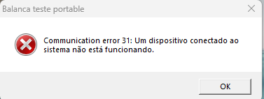 Communication error 31: Um dispositivo conectado ao sistema não está funcionando - Balança