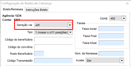 Após isso marque a Geração Via para API conforme a imagem abaixo.