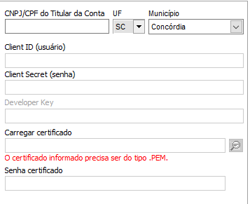 Após isso será necessário o preenchimento dos dados referente aos códigos que irão efetuar a comunicação via API com o banco, portanto estes códigos devem ser preenchidos igual a forma repassada pelo banco.