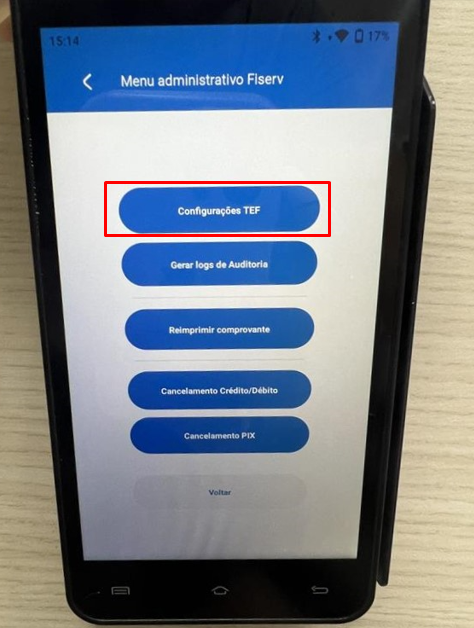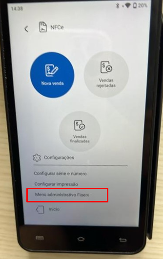 E após clicar no campo NFCe, abrirá o layout da NFC-e, localize o Menu administrativo Fiserv.