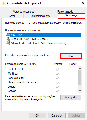 Clique com o botão direito na pasta onde o Terminal360 está armazenado e selecione Propriedades.