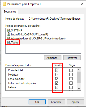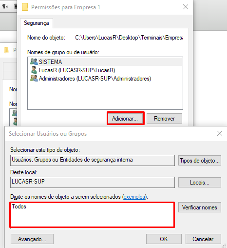 Clique em Adicionar e digite Todos, depois clique em OK.